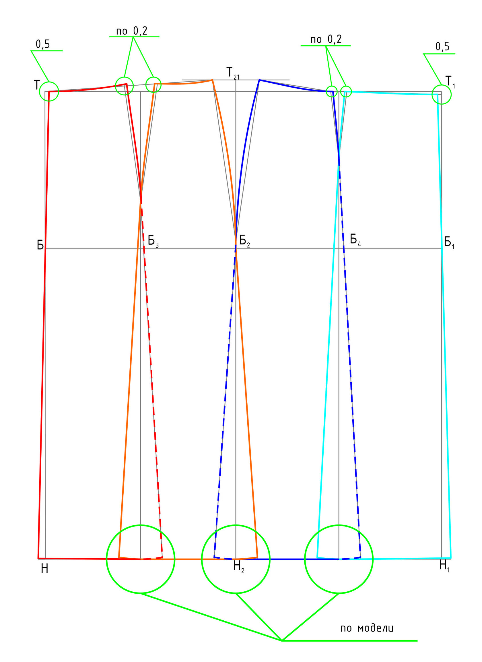 Þ Задняя вытачка Вз=∑В:3 (максимальный раствор =4см, если цифра получается большей, то раствор делят на два и выполняют построение двух вытачек)