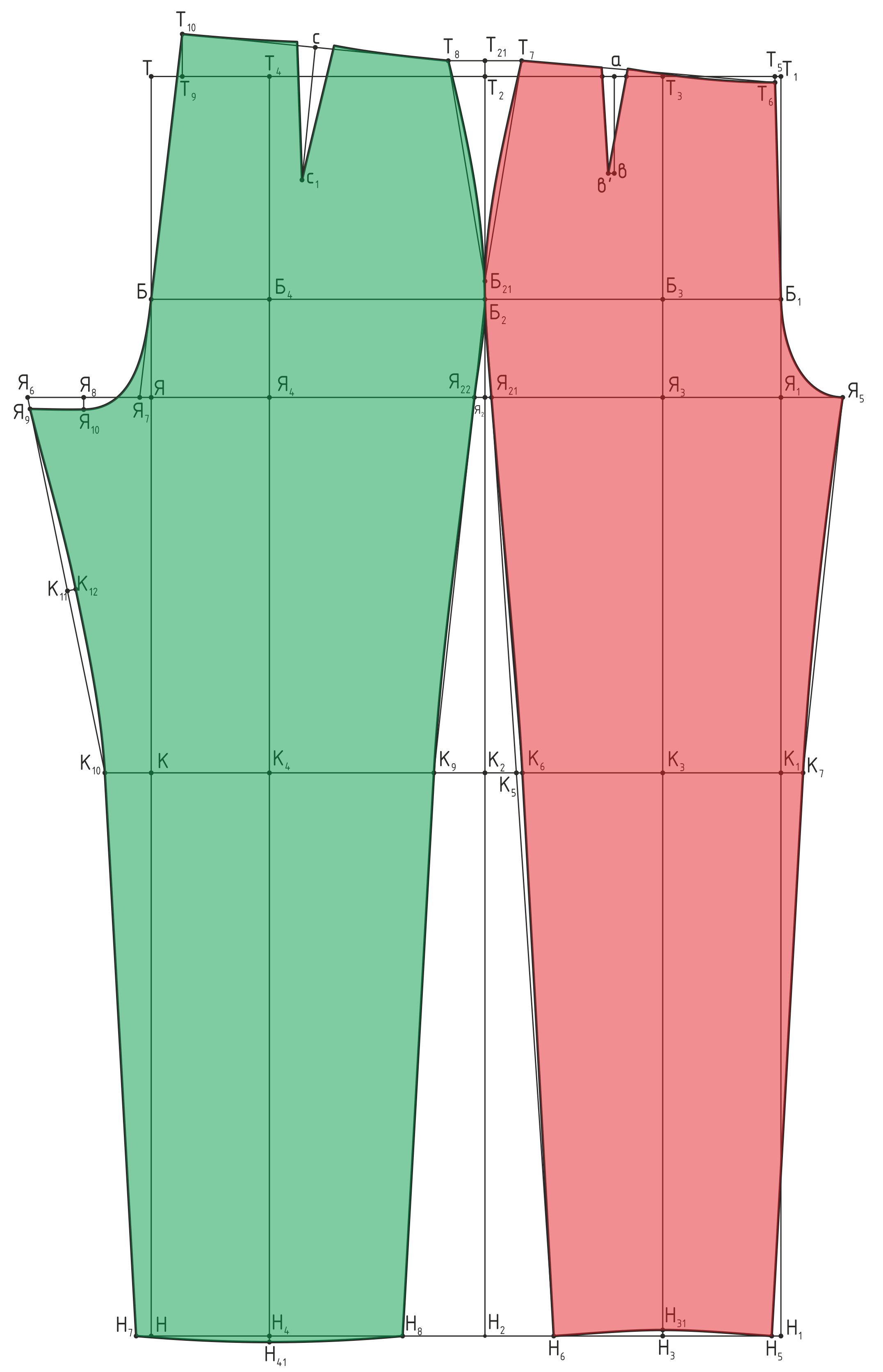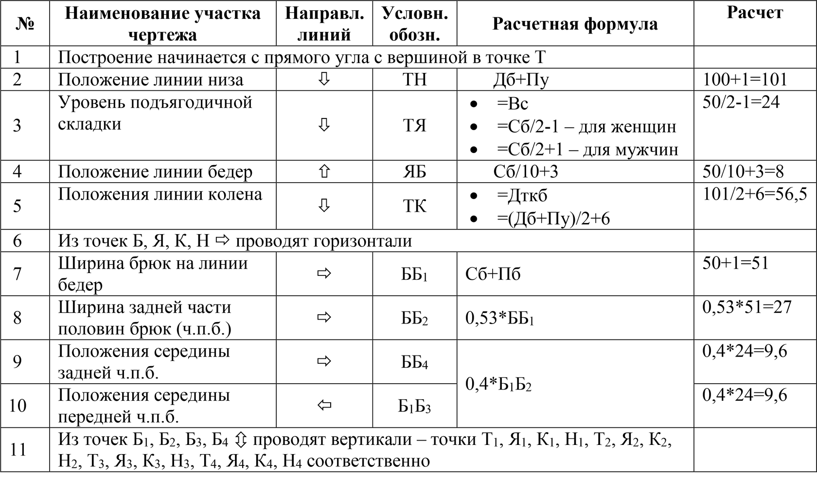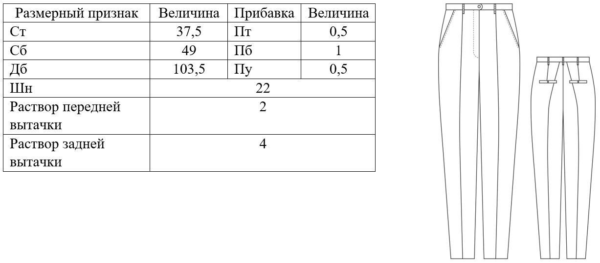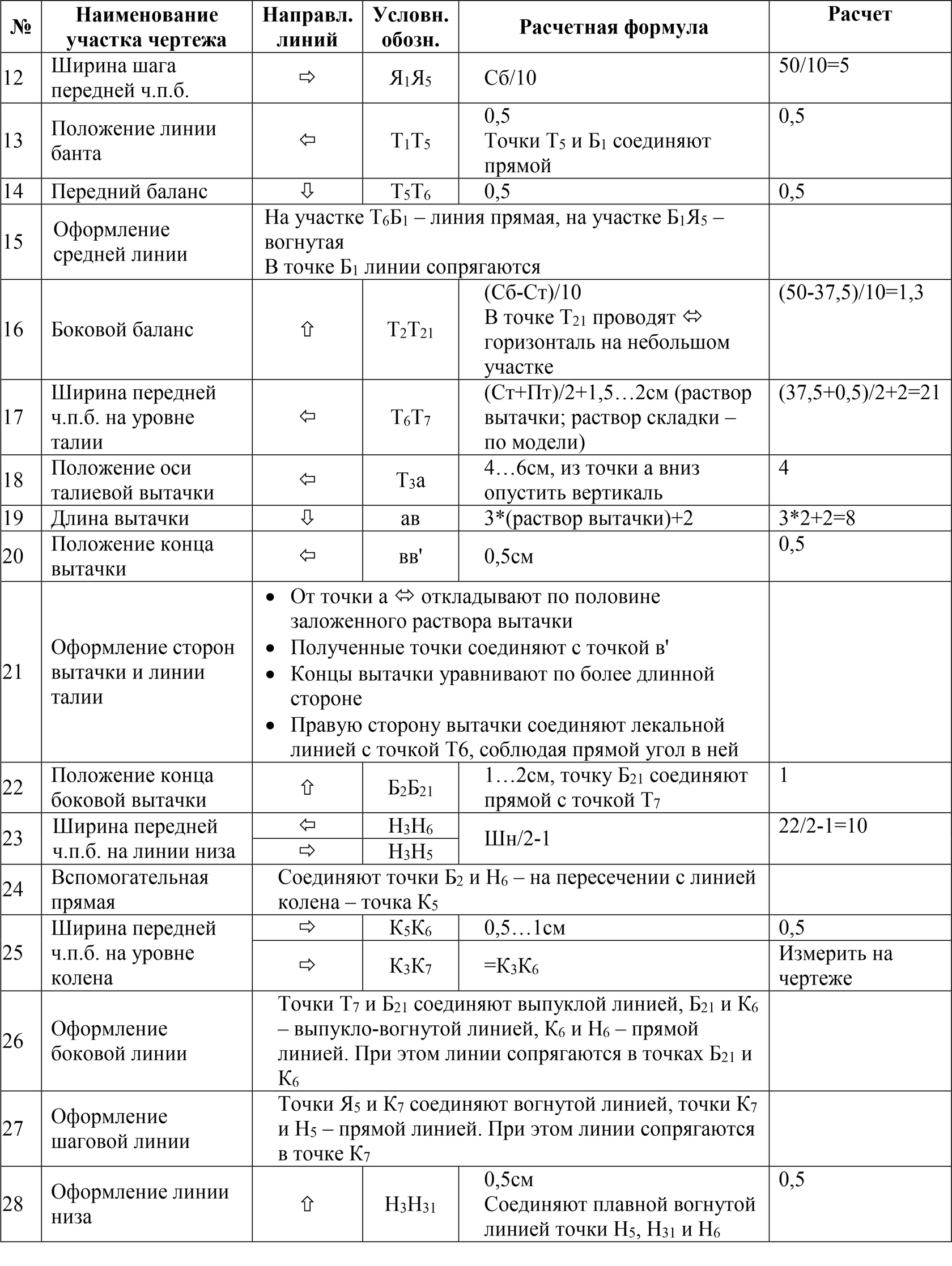 3. Расчет суммы талиевых вытачек: ∑В=(Сб+Пб)-(Ст+Пт)