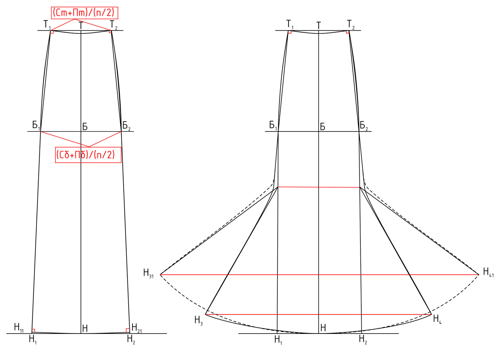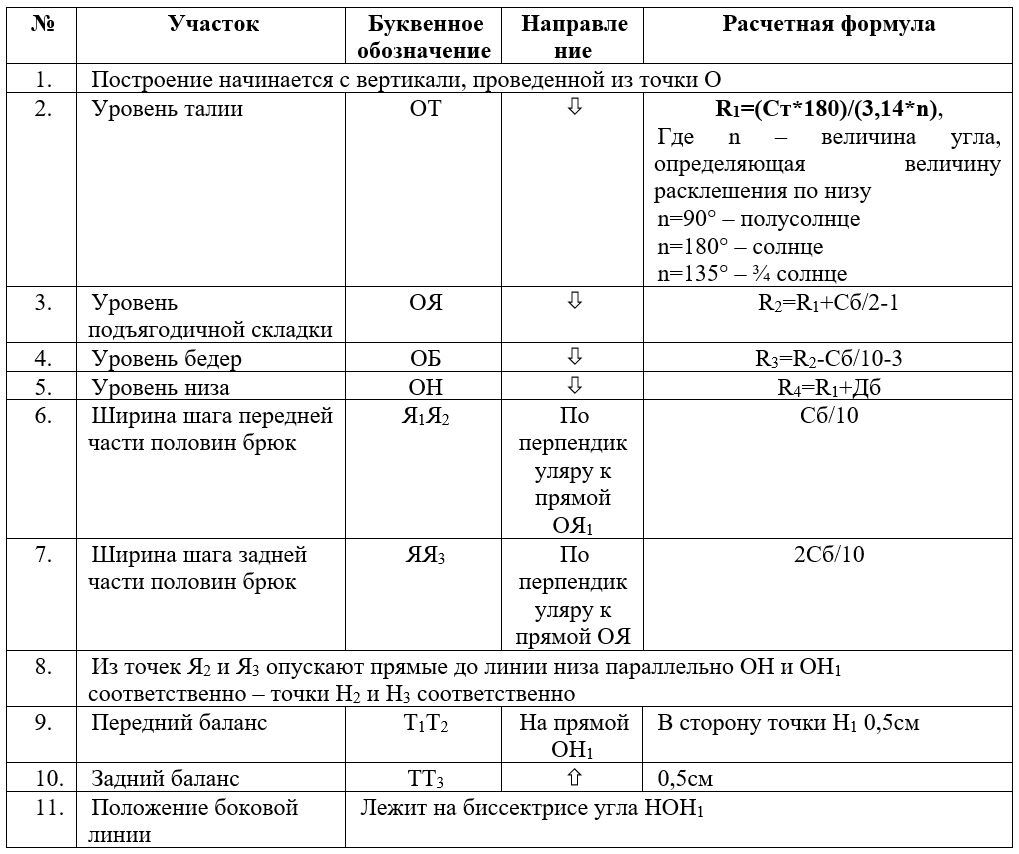 Расчет и построение базовой конструкции прямой юбки