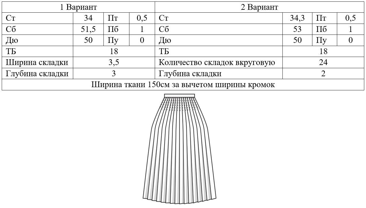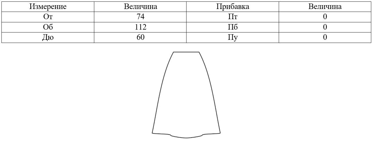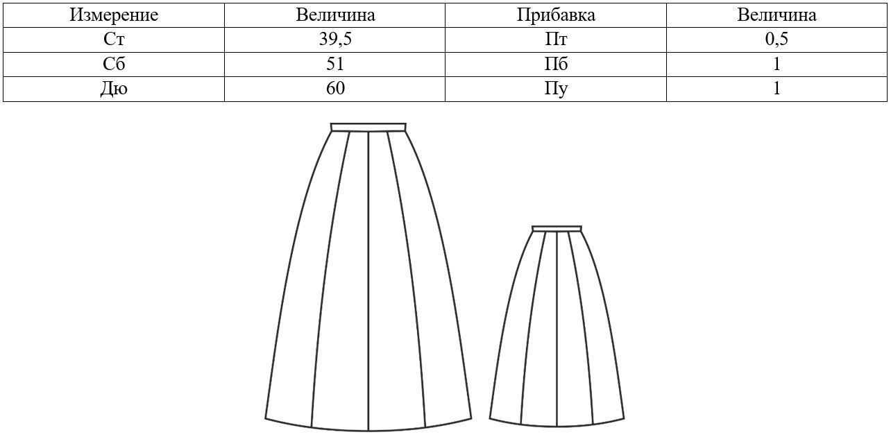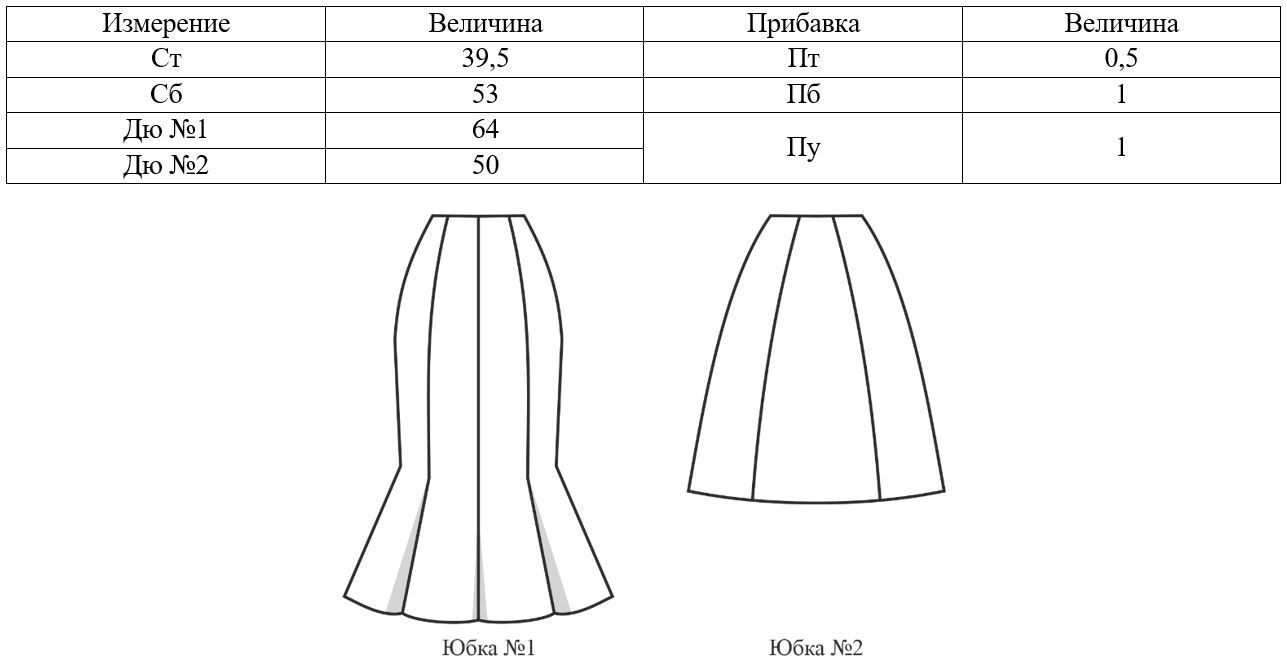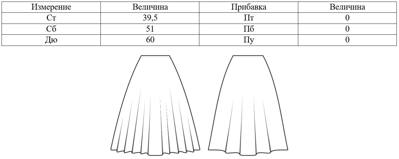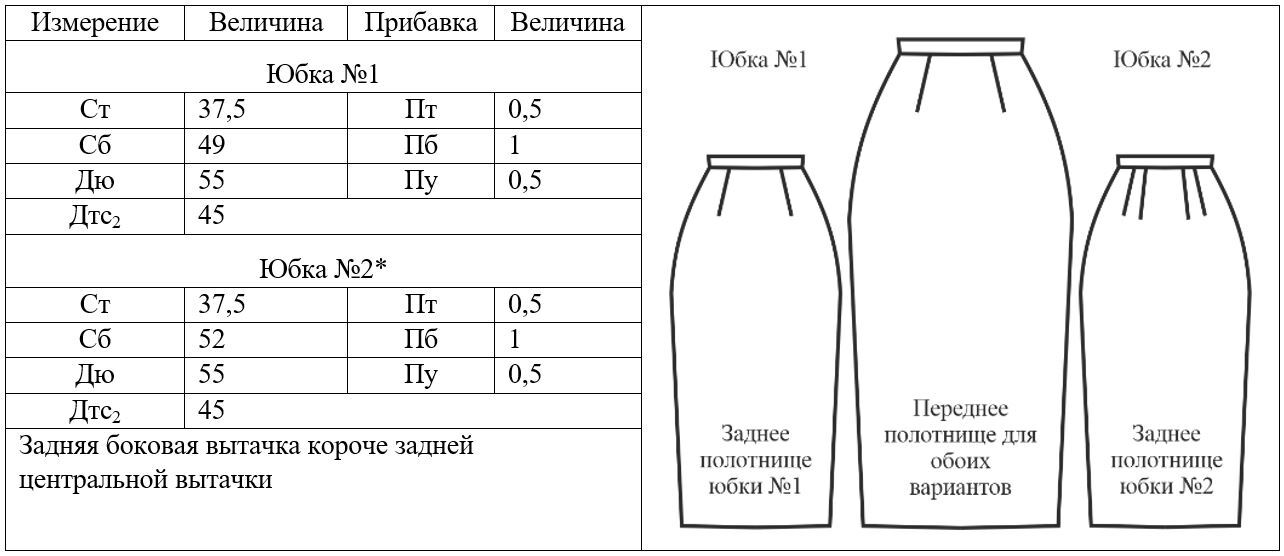 Порядок построения конструкции прямой юбки будет представлен на примере следующих исходных данных: