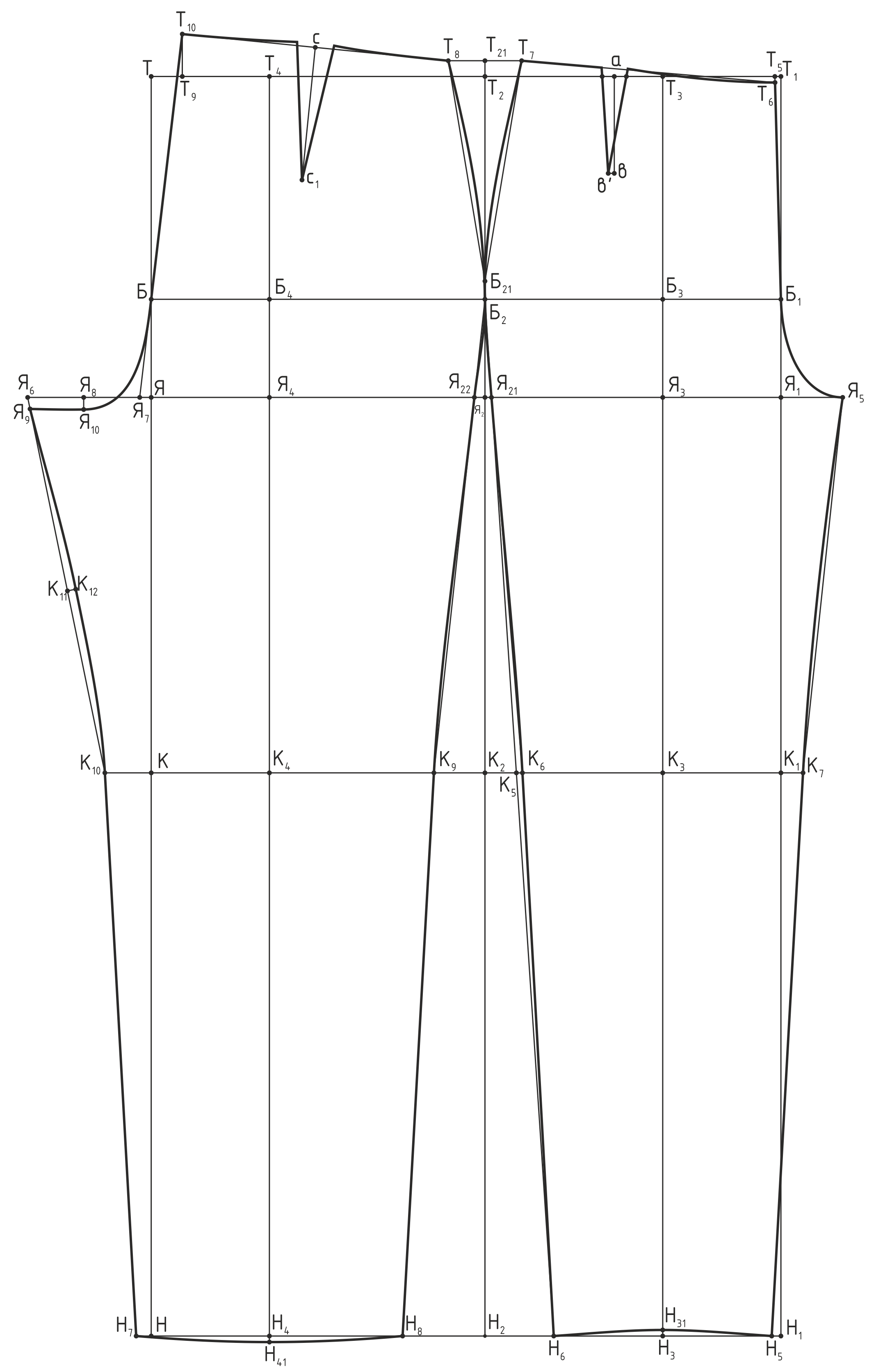 Предварительный расчет конструкции прямой юбки и построение Базисной сетки