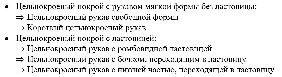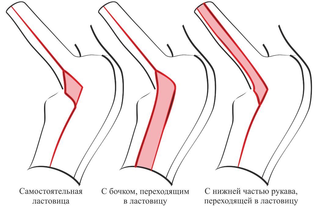 Наличие или отсутствие ластовицы в изделии с цельнокроеным рукавом, в первую очередь, обусловлено объемной формой изделия: так в изделиях малого объема ластовица является залогом удобства движения руками. Порядок построения в Дополнительных ресурсах