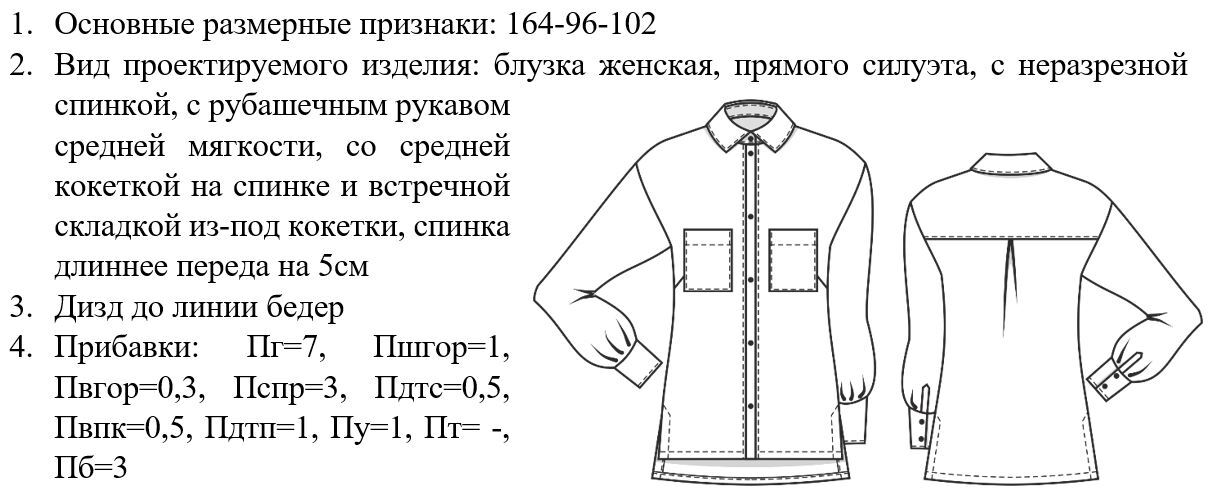 Особенности построения контуров спинки и переда для рубашечного рукава