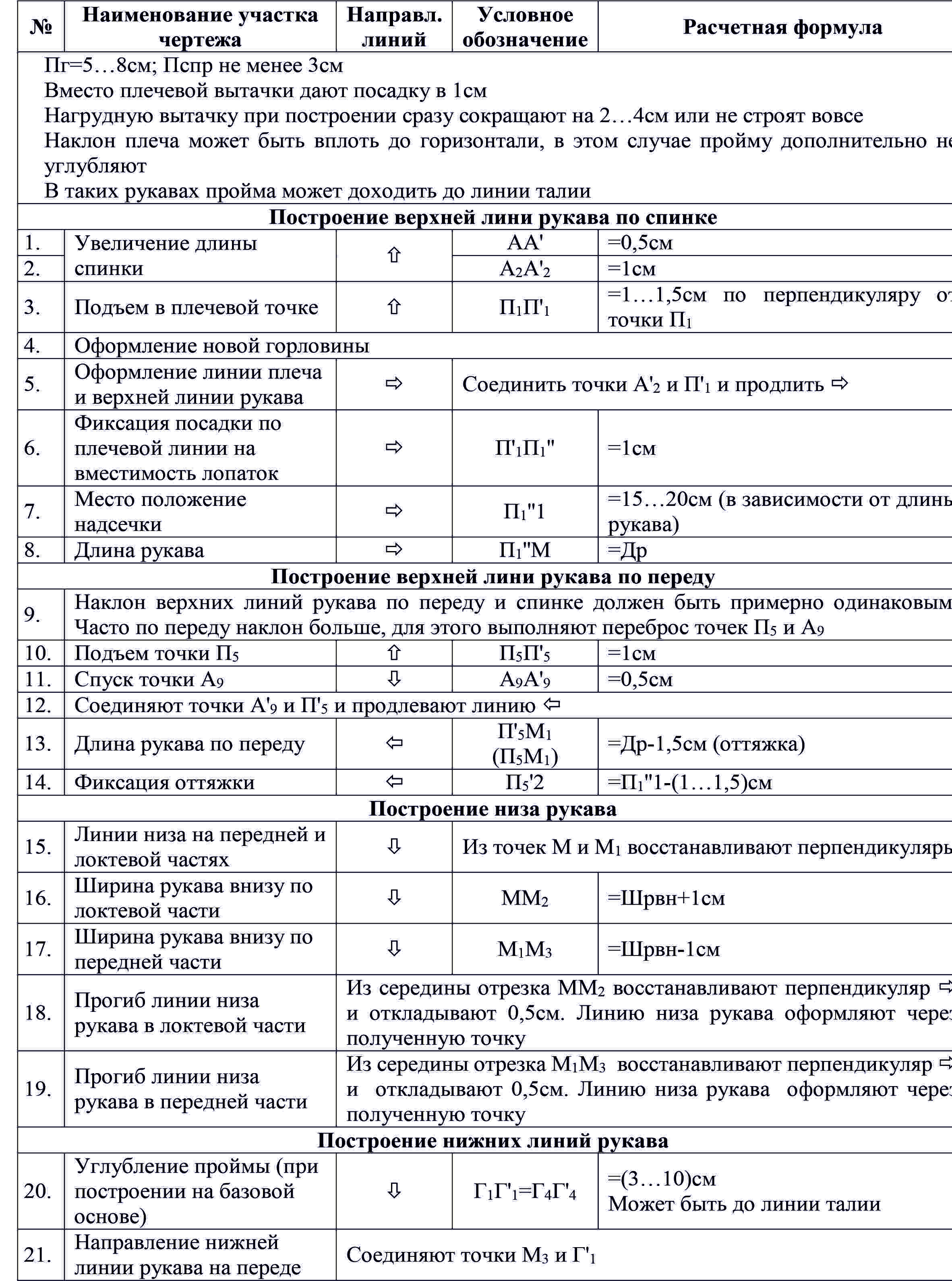 После построения регланных линий приступают к непосредственному построению конструкции рукава, сначала передней части, затем локтевой