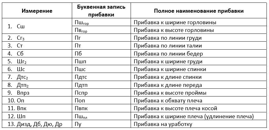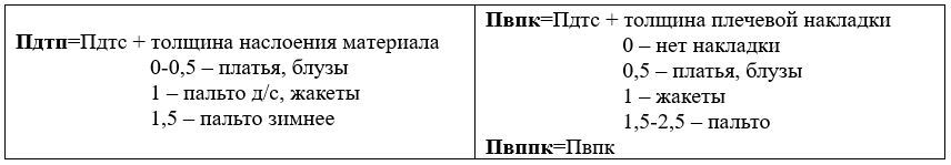 Индекс при букве «П» определяет участок чертежа, к которому дана прибавка. (Пдтс – прибавка к длине спинки, Пг – прибавка к полуобхвату груди и т.д.).
