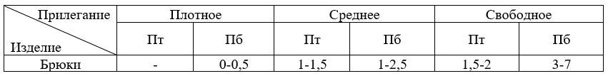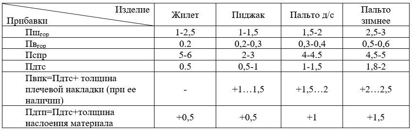 Прибавка общая состоит из двух прибавок: технической (Птех) и декоративно-конструктивной (Пд-к).