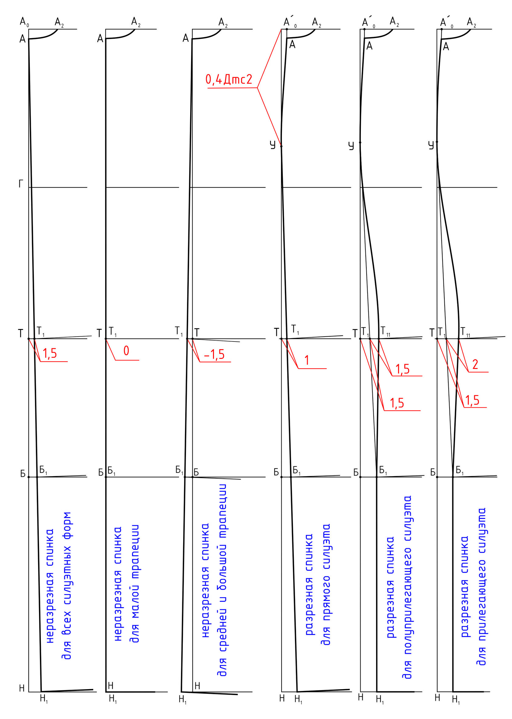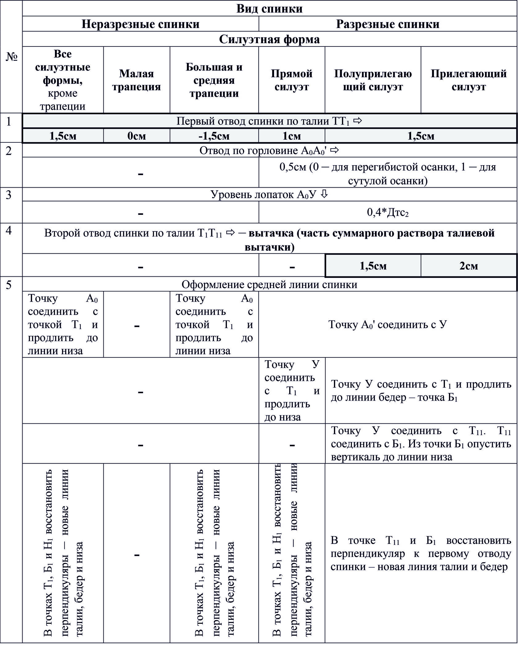1.1 На спинке – на линии бедер, верхнюю часть вытачки не строят