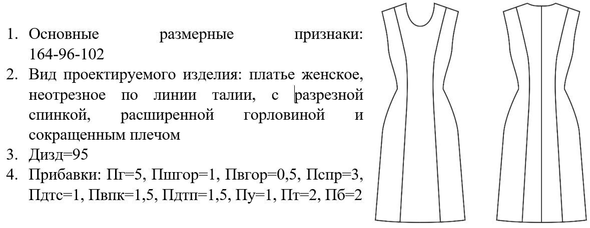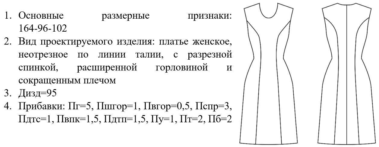 1. Положение концов вытачек